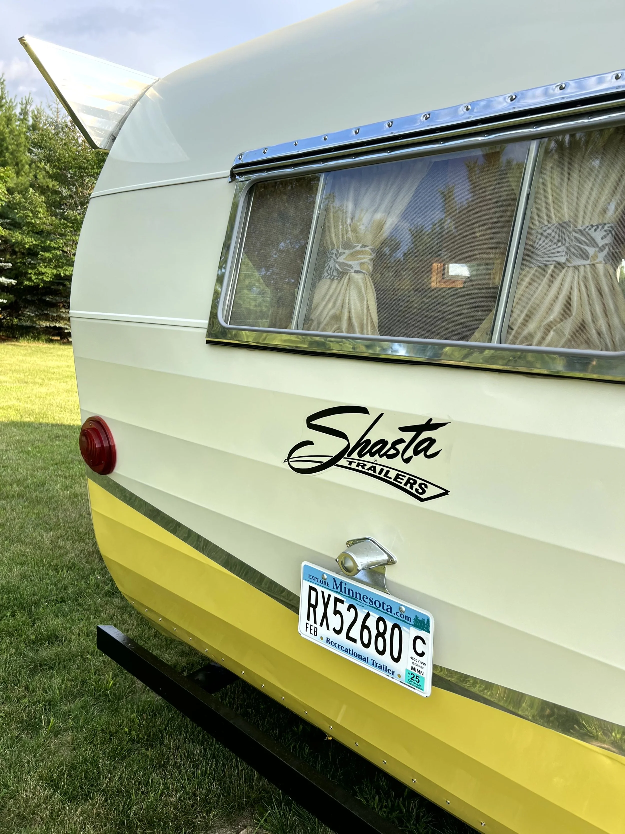 A couple years later, we were looking through an online marketplace and found a yellow Shasta that was remarkably close to us. John asked the seller if he could look at it right away. Once he got there, we realized it was the same trailer - we recognized the peach-colored upholstery on the seats! This time we brought cash, make an offer on the spot, and drove home with it!